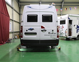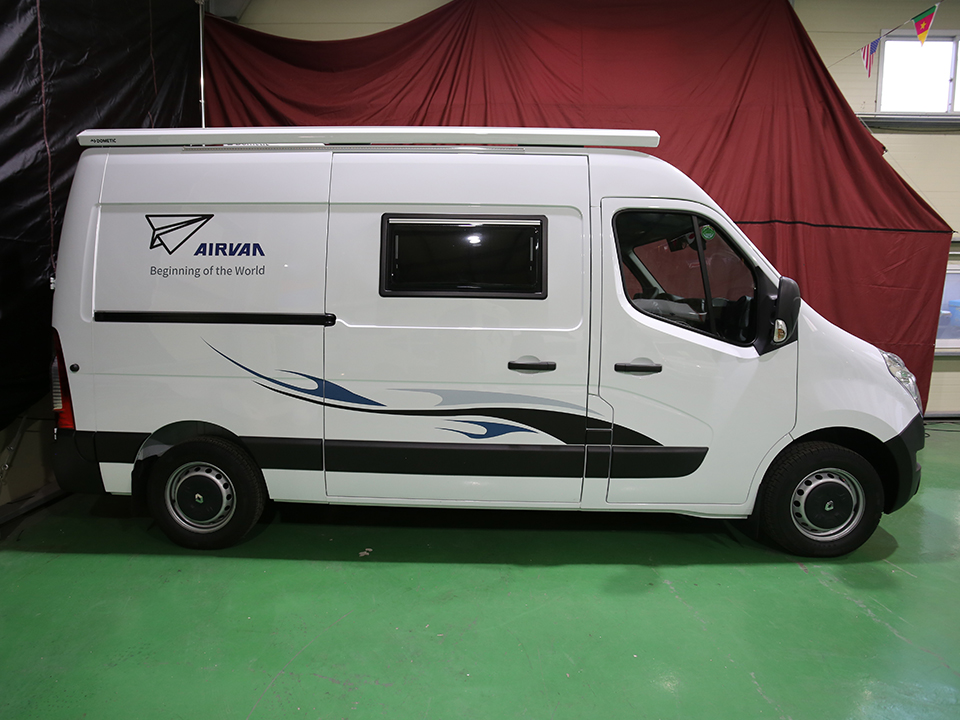 - Convenience specifications : 96 liter refrigerator (DC), LED interior light & entrance light, largest rear storage cabinet, external shower, no-start heater (D2), 200W solar battery, microwave oven, 3.5M roof side awning, max fan